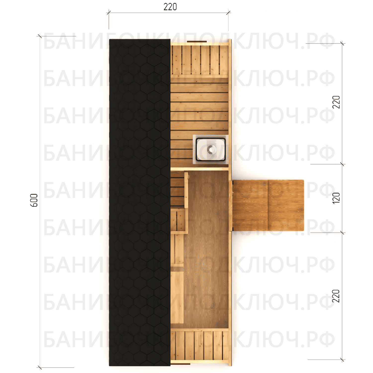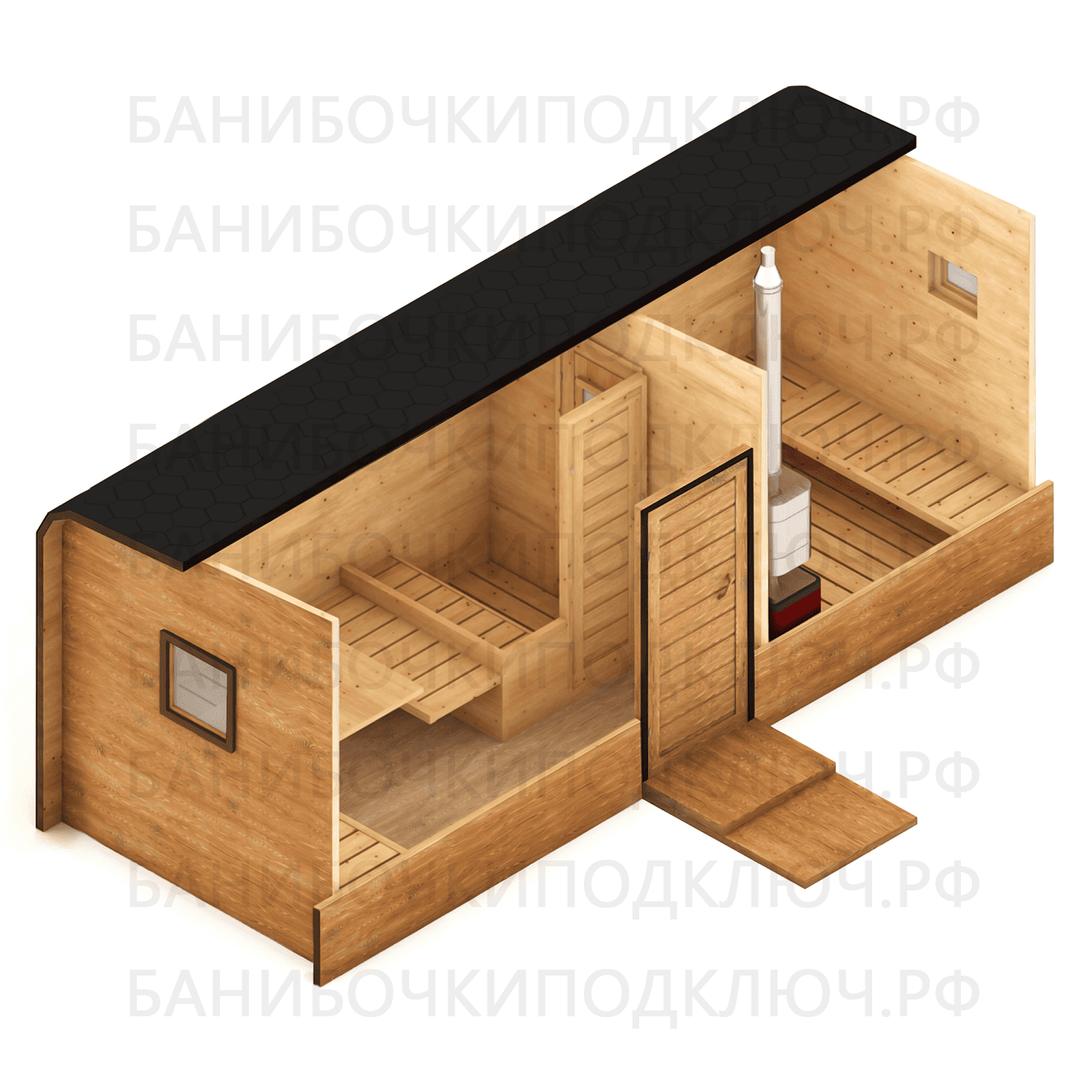 Баня Викинг 6 x 2,2 м с бок. входом и проходной мойкой