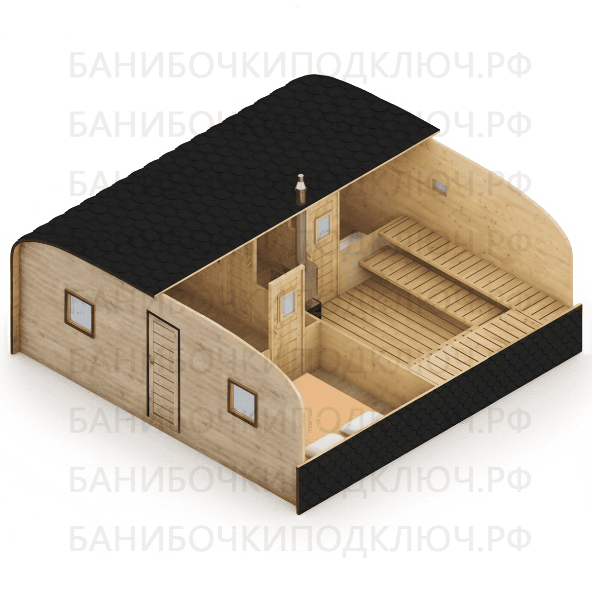 Баня парус 6 x 2,3 м в комплектации "ЛЮКС"